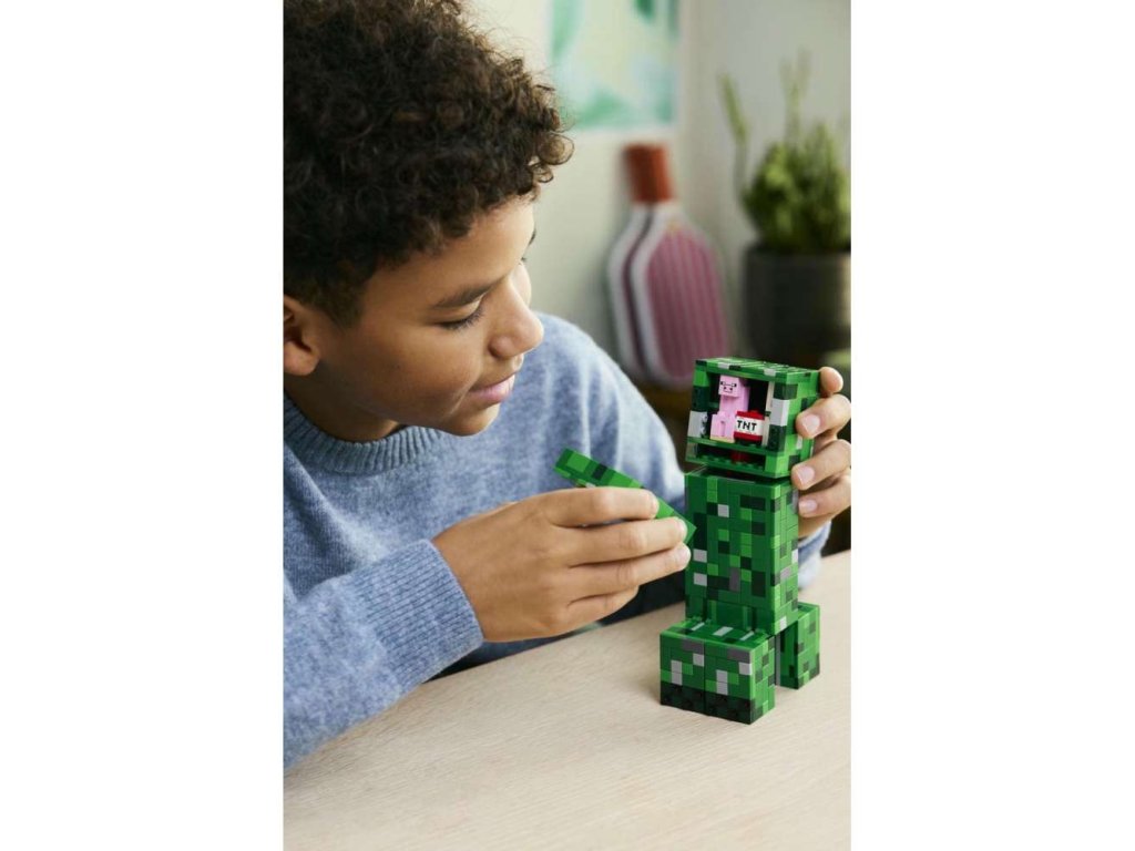 Tento Creeper™ je vždy připraven vydat se do akce – ať už se plíží světem Minecraftu nebo je vystavený v dětském pokojíčku. Model obsahuje také skryté překvapení. Sejměte přední část Creeperovy hlavy a odhalte miniaturní první verzi Creepera a dílek TNT. Přesně to, co potřebujete na výbušná dobrodružství ve světě Minecraft!