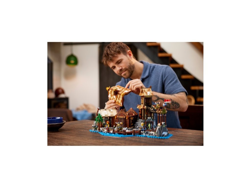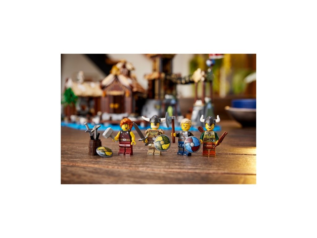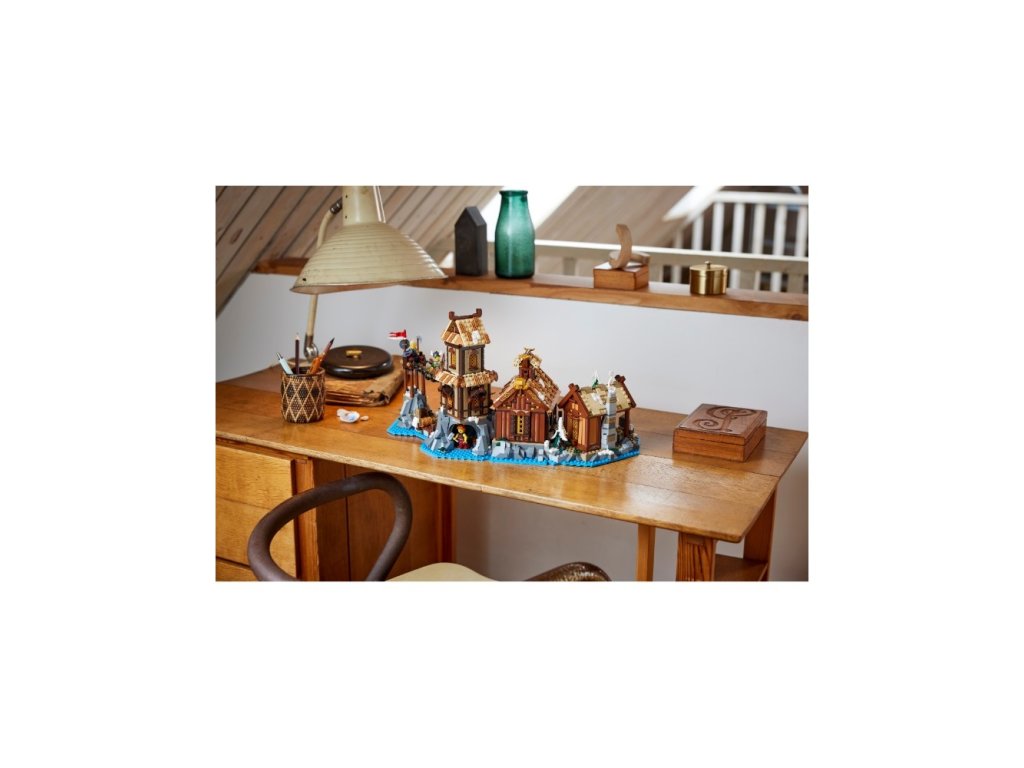 Vraťte se zpátky v čase a okuste život ve vikingské vesnici. Postavte kovárnu, ve které kovářka ková helmy, zbraně a meče. Navštivte dlouhý dům, kde sídlí náčelník na trůnu a podávají se hostiny. Vytvořte most ke strážní věži a prozkoumejte jeskyni. Tento propracovaný model vhodný na hraní i na výstavku zaručeně udělá radost milovníkům historie, kteří mají slabost pro dobu vikingů.