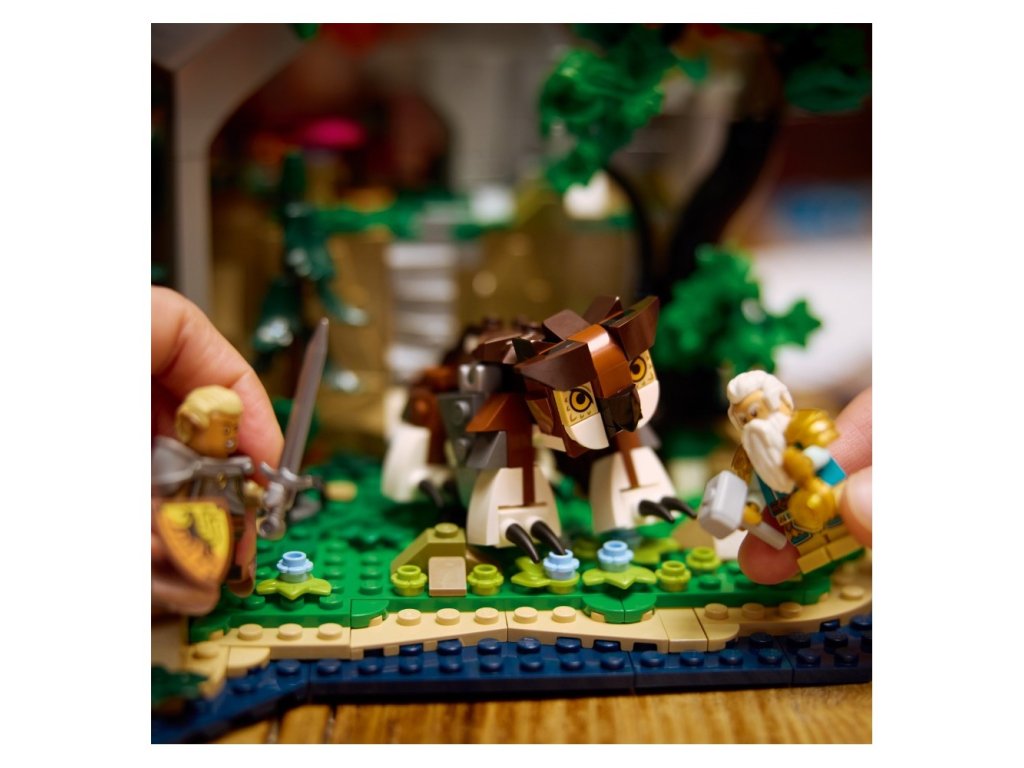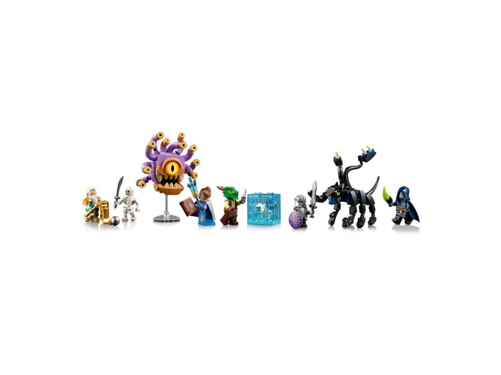 • Figurky mytických stvoření – Součástí je minifigurka LEGO® elfa kouzelníka, trpaslíka klerika, skřítka bojovníka, orka lotra a drakorozeného Ajaxe Jadescalea a monstra, jako je soví medvěd a pozorovatel