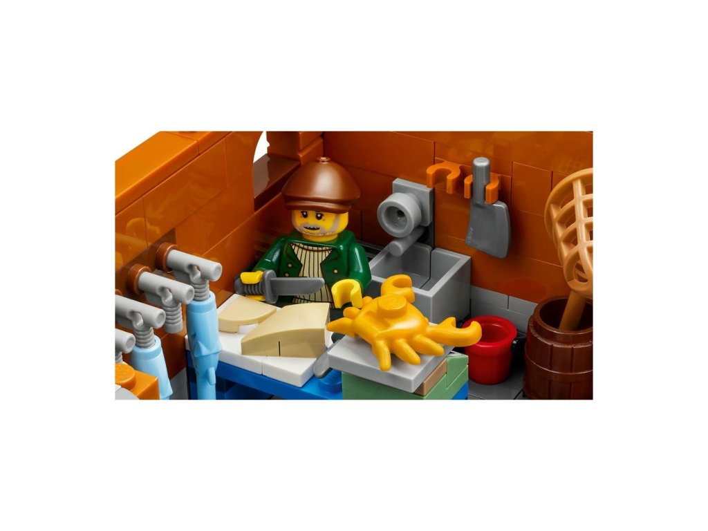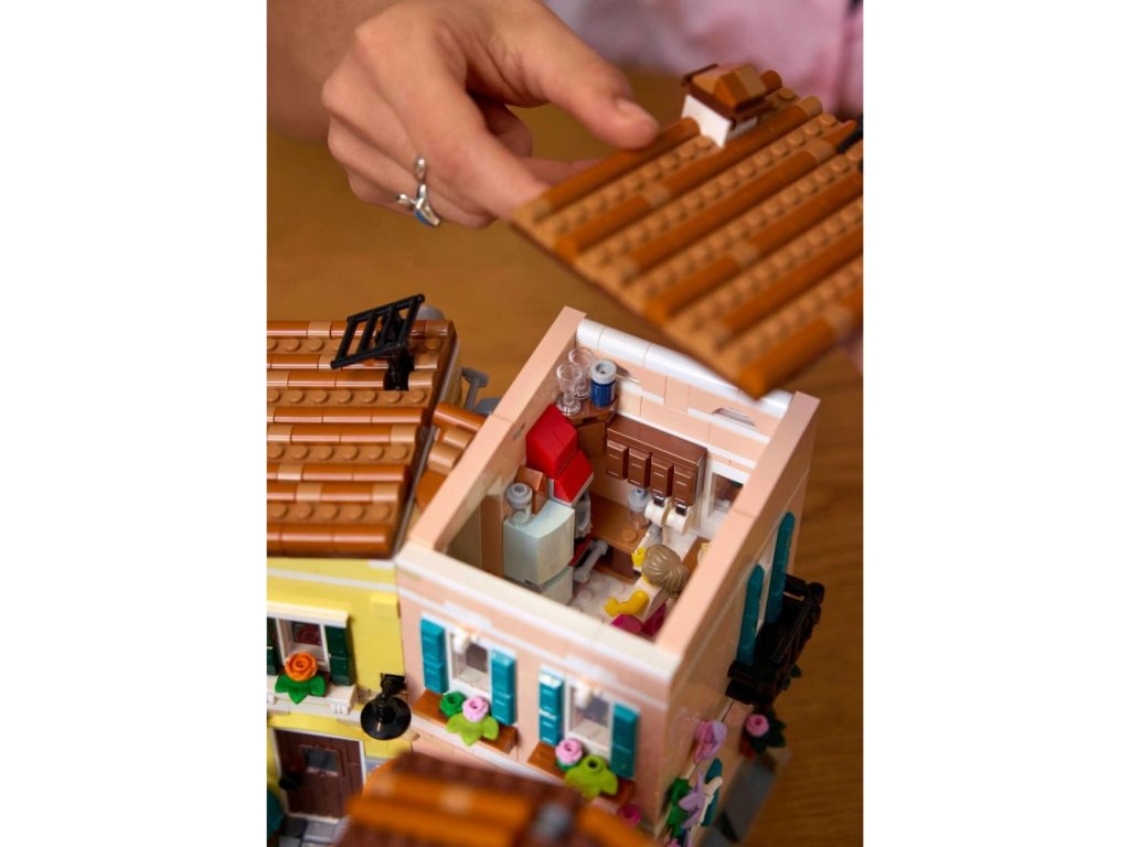 Odejměte střechy a horní patra tří budov a prohlédněte si jejich detailní interiéry. Najdete tu obchod se zmrzlinou, obchod s potápěčským vybavením a rybí trh a nad nimi domy prodavačů. Přidejte 10 minifigurek LEGO a postavte si autentické scény: rybáře na lodi ve Středozemním moři, nonnu, která ukazuje vnukovi, jak se vyrábějí těstoviny trofie a focaccia, kritika ochutnávající místní kuchyni, řidiče skútru projíždějícího po ulici... A pozor na koťátko, které si v uličce pochutnává na ukradené rybě! Tato sběratelská stavebnice LEGO Ideas obsahuje 3251 dílků.