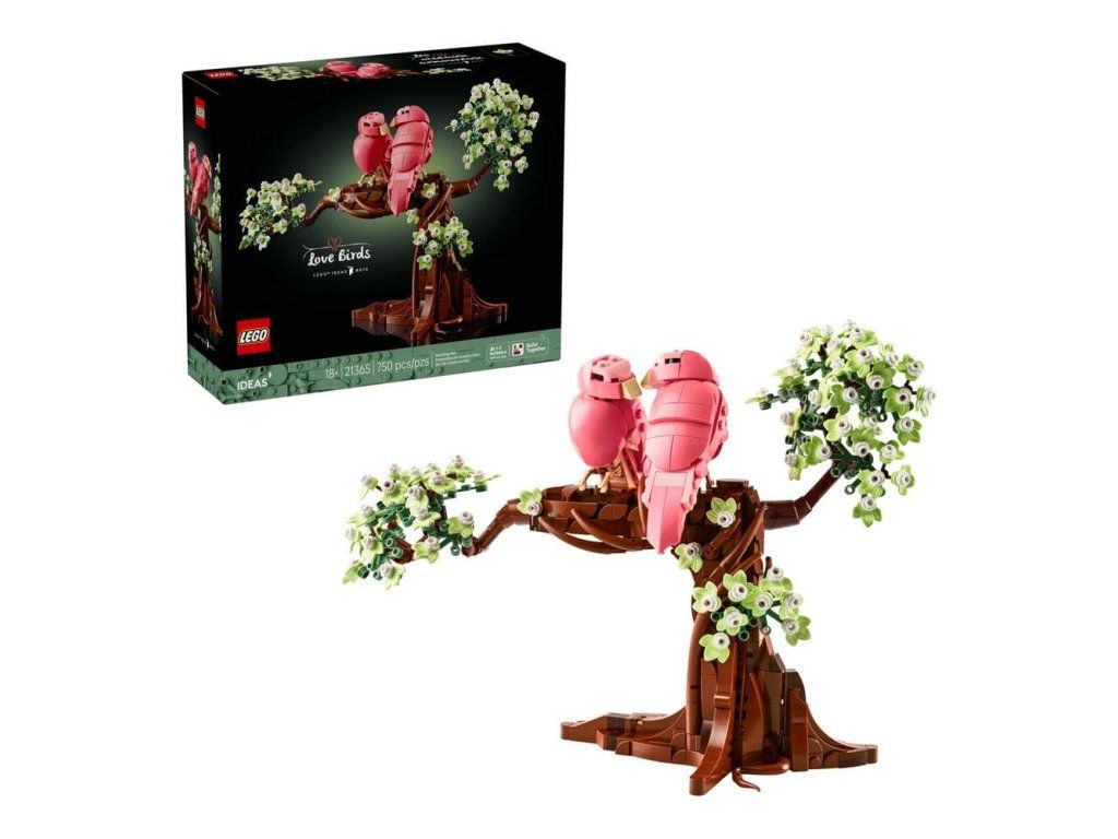 DEKORACE S PTÁČKY – Vyjádřete lásku a přátelství se stavebnicí LEGO® Ideas Zamilovaní ptáčci (21365) pro dospělé, která obsahuje 2 zamilované ptáčky, kteří sdílejí okamžik plný lásky na rozkvetlém stromě