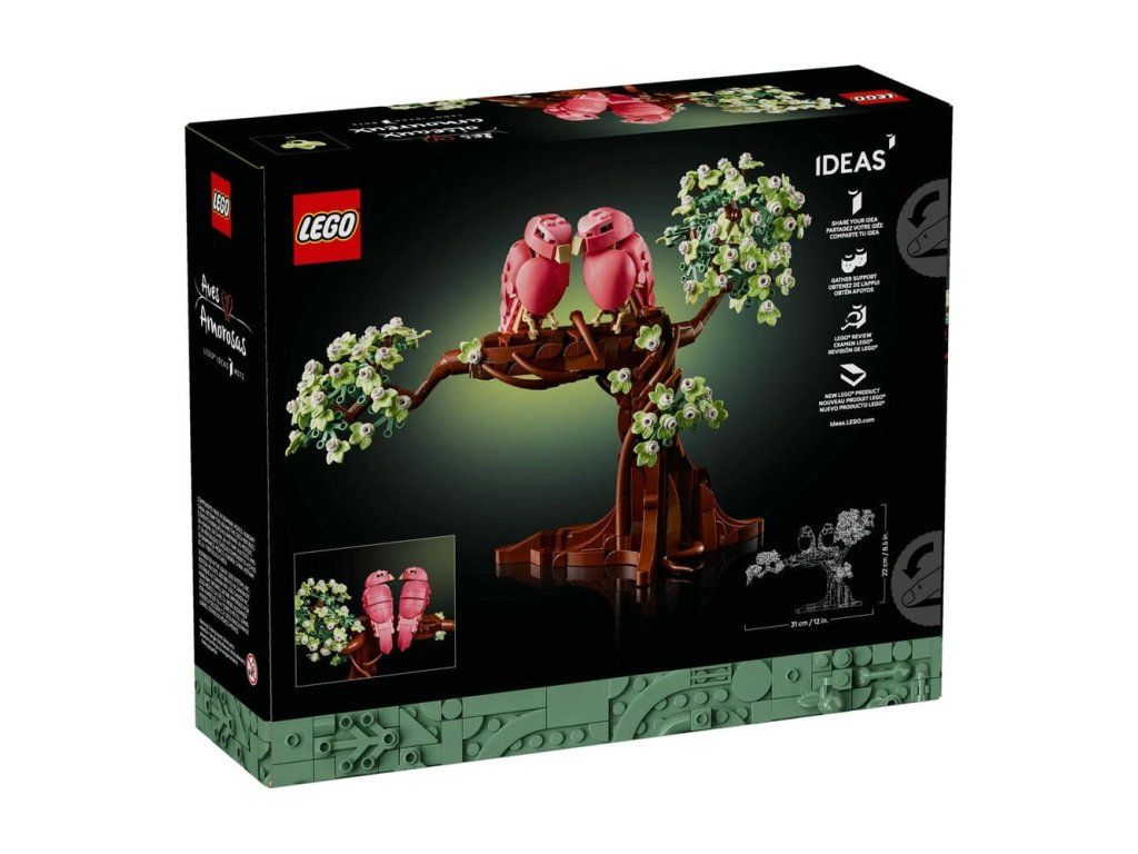 Oslavte lásku a přátelství, a postavte roztomilou dekoraci s ptáčky v podobě stavebnice LEGO® Ideas Zamilovaní ptáčci(21365) pro dospělé. Sestavte propracovaný jarní strom z kostek LEGO a posaďte na něj dva nádherné korálově růžové ptáčky. Otočtehlavy ptáčků a nakloňte je na větvi tak, aby při pohledu zezadu společně tvořili tvar srdce. Původní návrh této stavebnice vytvořil návrhář z řad fanoušků a zvolen fanoušky LEGO. Model se stal vítězným návrhem soutěže LEGO Ideas „Build from the Heart“ (Stavějte srdcem). Stavebnice se stane roztomilým dárkem k Valentýnu pro ženy, muže, páry a milovníky umění, a poslouží jako smysluplná dekorace. Tato stavebnice pro dospělé představuje zábavnou a romantickou aktivitu pro páry, ať už se stavebnicemi LEGO teprve začínáte, nebo jste zkušený stavitel. Stavějte chytře s aplikací LEGO Builder – přibližujte a otáčejte model ve 3D, sledujte svůj pokrok a postupujte podle podrobného digitálního návodu. Stavebnice obsahuje 750 dílků.