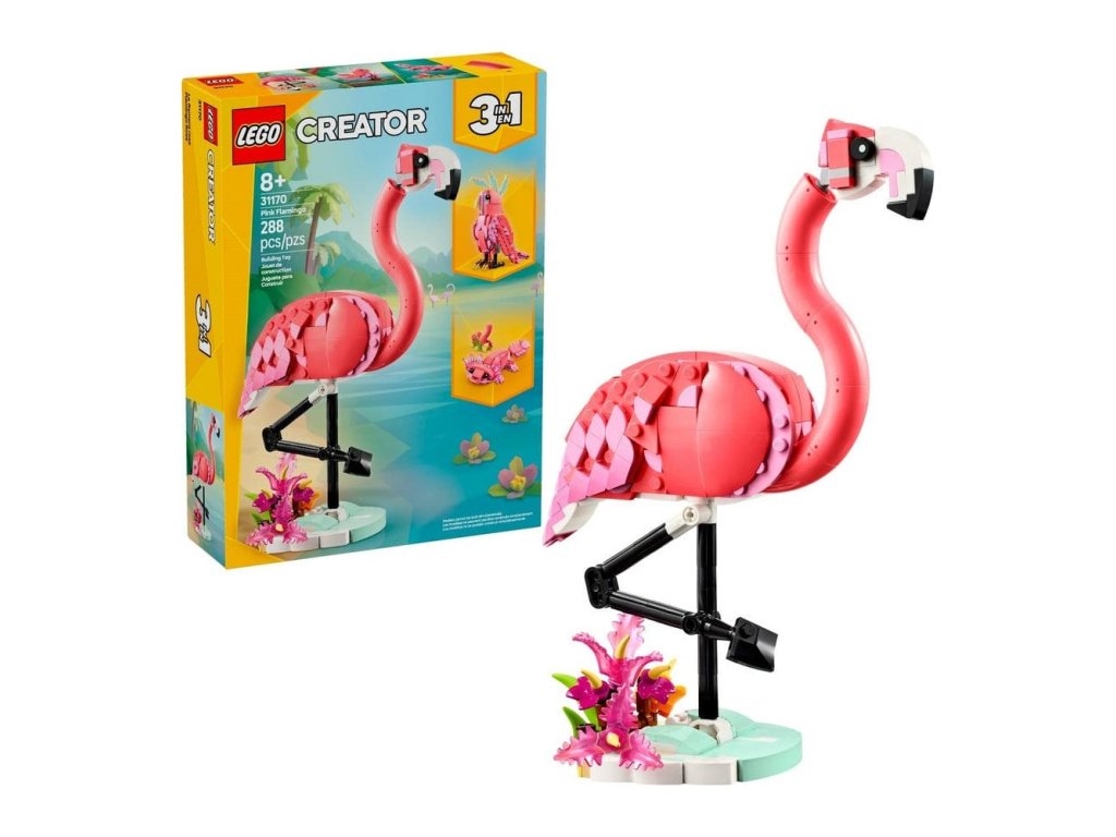 Potěšte holky a kluky od 8 let, kteří milují zvířata, s fantastickou stavebnicí LEGO® Creator 3 v 1 (31170) Divoká zvířata: Růžový plameňák. Růžový plameňák má pohyblivou hlavu a sedí na malém stojanu pokrytém rostlinami a děti si s ním užijí hodiny nápaditého hraní nebo si ho hrdě vystaví v pokojíčku. S touto stavebnicí LEGO si děti užijí 3 různé možnosti stavění ze stejných kostek: postaví si růžového plameňáka s pohyblivou hlavou na stojanu pokrytém rostlinami, pohyblivého růžového kakadua, který může otáčet hlavou o 360 stupňů, nebo rozkošného pohyblivého růžového axolotla s podvodními rostlinami. Všechny 3 roztomilé modely zvířátek LEGO představují zábavné dárky pro děti. Stavebnice LEGO Creator 3 v 1 inspirují děti ke kreativnímu stavění – v každé krabici najdou dílky k sestavení a přestavování 3 různých modelů. Se stavebnicemi 3 v 1 si postaví modely inspirované jejich zájmy, včetně superrychlých vozidel, úžasných zvířat a propracovaných domů. Modely nelze sestavit současně.