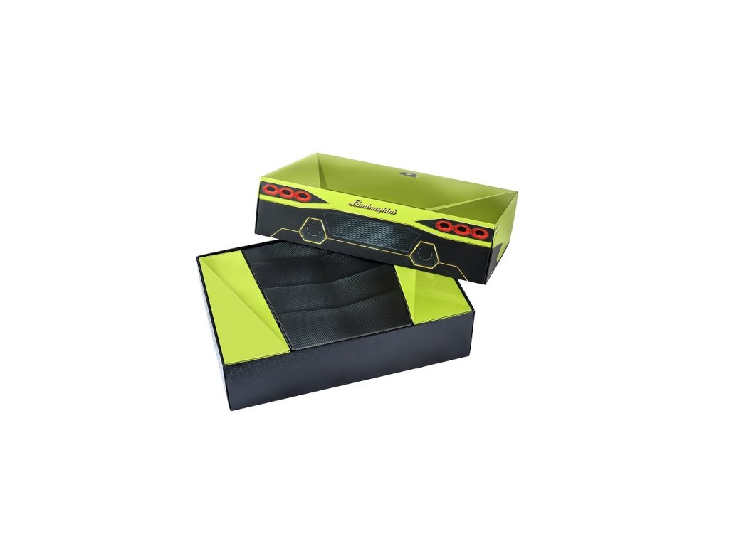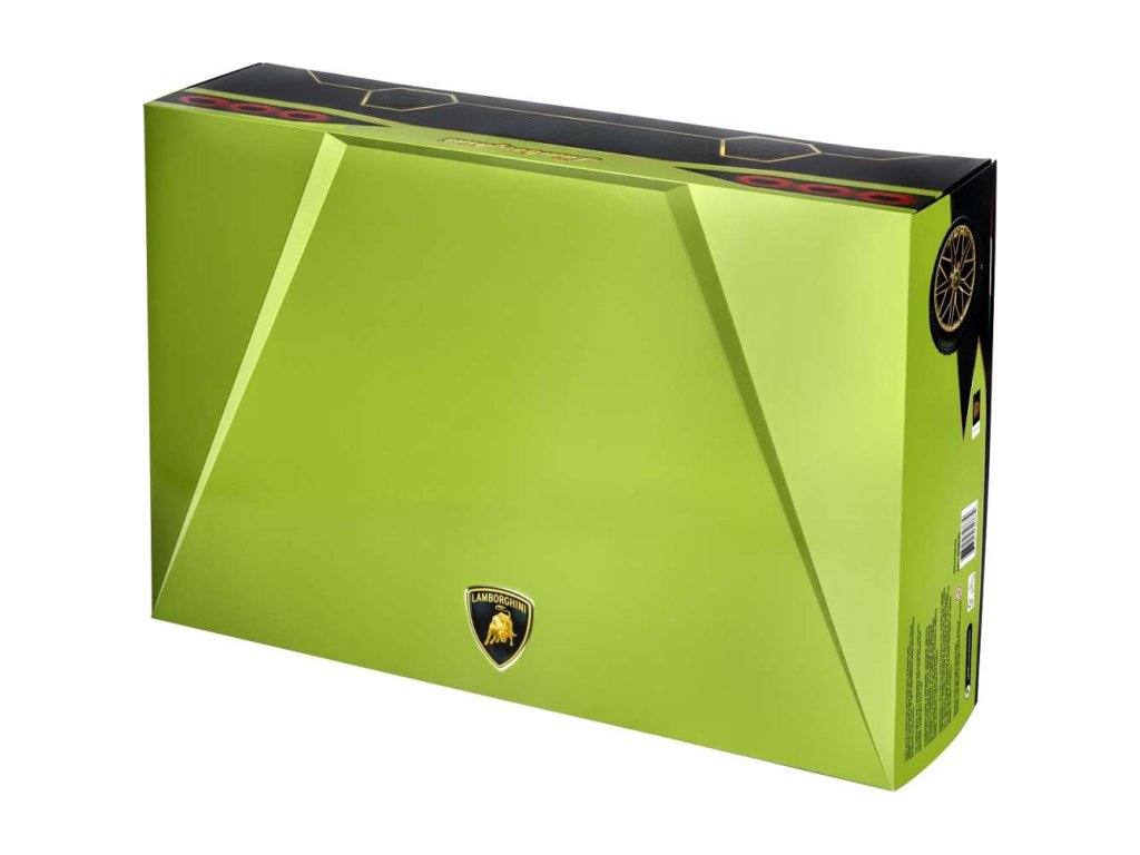 • Sestavitelný model sportovního vozu v měřítku 1:8 má ikonickou limetkově zelenou barvu, zlaté ráfky kol a další propracované prvky. Měří přibližně 13 cm, na výšku, 60 cm na délku a 25 cm na šířku.