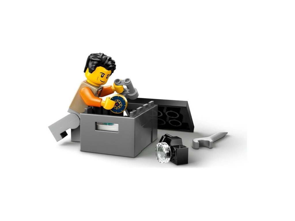 • St avebnice s vozidlem plná doplňků pro minifigurky LEGO® – Součástí je fotoaparát, lahev s vodou, baterka, mapa, kompas, dalekohled, nářadí a lékárnička na hraní rolí