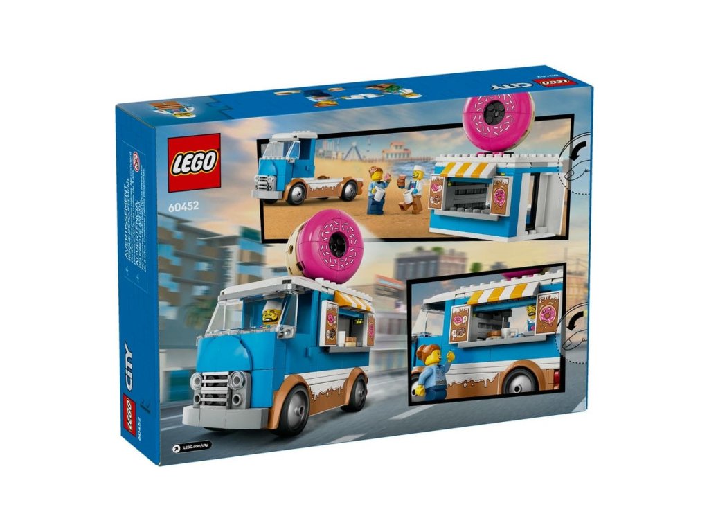 Představujeme dokonalou automobilovou stavebnici pro milovníky sladkých dobrot od 5 let. Stavebnice LEGO® City (60452) Truck s donuty obsahuje dekoraci lahodné polevy, obří koblihu na střeše a bezbariérovou kuchyňku s kávovarem a pokladnou. Děti naservírují chutné koblihy a nápoje z obslužného okénka a po odpojení kiosku si užijí ještě více možností hraní. Stačí přidat minifigurky prodavače a zákazníka a zábava může začít! Návod na stavění mobilního obchodu s donuty LEGO najdete v krabici – nebo si stáhněte aplikaci LEGO Builder, která dětem umožní prozkoumávat a ukládat si virtuální stavebnice, sledovat postup stavění a přibližovat, otáčet a prohlížet si modely ze všech úhlů, zatímco na nich pracují. Stavebnice LEGO City Skvělá vozidla přináší hračky plné úžasných funkcí pro neomezené hraní na zemi, ve vzduchu i na vodě. Děti můžou tuto stavebnici Trucku s donuty přidat k dalším stavebnicím z řady LEGO City (prodávají se samostatně) a užívat si ještě úžasnější dobrodružství!