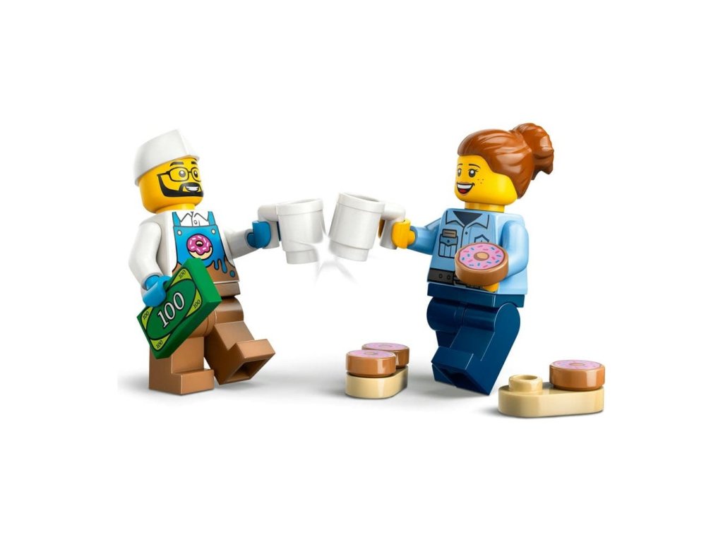 • Doplňky pro minifigurky LEGO® – Tato stavebnice obsahuje spoustu doplňků pro hraní, včetně kávovaru, pokladny, cedule s donutem, 4 donutů a 2 hrnečků