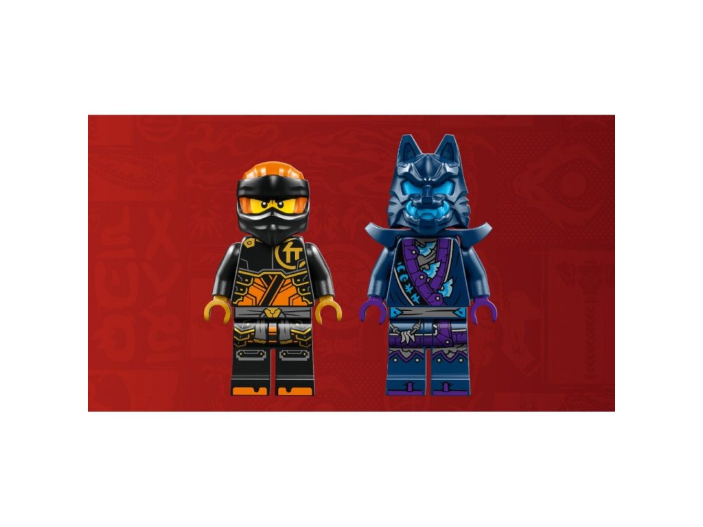 • 2 minifigurky ze světa NINJAGO® – Součástí stavebnice je Cole s miniaturní katanou a válečník s vlčí maskou s mečem. Děti tak mohou znovu prožít své oblíbené bitvy z 2.řady televizního seriálu NINJAGO Dračí povstání
