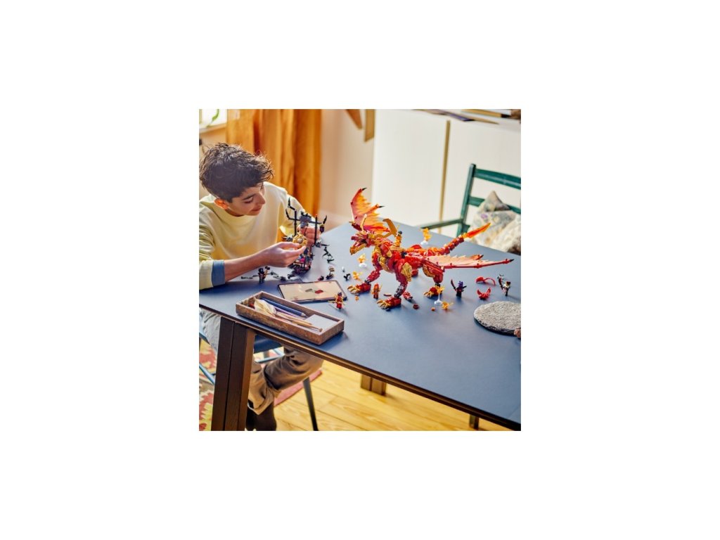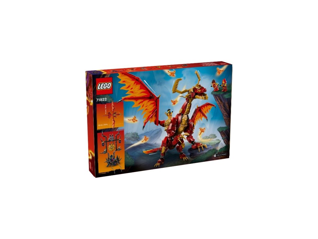 Děti od 12 let si připomenou vzdušná dobrodružství z 2. řady televizního seriálu NINJAGO® Dračí povstání s úchvatnou stavebnicí Zdrojový drak pohybu (71822). Model představuje největšího draka z kostek LEGO® všech dob a má pohyblivé nohy, ocas, boky, čelist, hlavu, krk a velká křídla. Na zádech má sedlový trůn a 6 menších dračích duší. Součástí této dračí stavebnice je 6 minifigurek, se kterými se děti pustí do strhujících bitev: Nindža válečníky Kaie, Wyldfyre a Arina (s parádními meči a braněmi) a zlotřilá trojice lord Ras, Jordana a válečník s vlčí maskou, kteří mají vlastní zbraně. Ve stavebnicích z řady LEGO NINJAGO se sestavitelnými hračkami s nindžovskou tematikou najdete robotické obleky, vozidla a chrámy a fanoušci nindžů si užijí hodiny zábavného hraní se svými oblíbenými hrdiny. Aplikace LEGO Builder vám a vašemu dítěti ukáže snadnou a intuitivní cestu stavitelským dobrodružstvím pro skládání modelu. Přibližujte a otáčejte modely ve 3D, ukládejte si stavebnice a sledujte svůj postup.