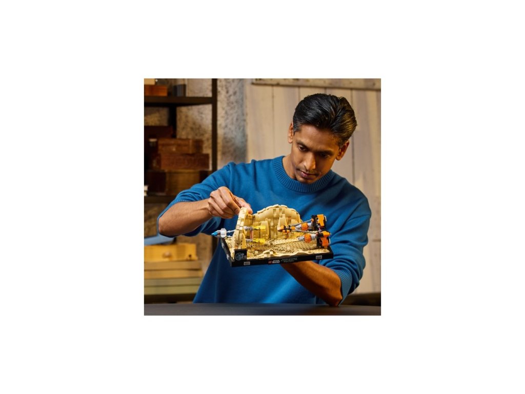 • Propracované diorama LEGO® Star Wars™ – Zachyťte strhující okamžik se stavebnicí Závody kluzáků v Mos Espa pro dospělé inspirovanou filmem Star Wars: Skrytá hrozba
