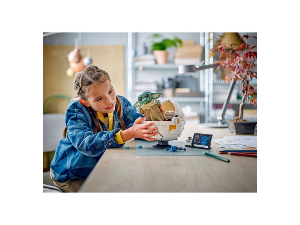 • Sestavitelná figurka LEGO® Star Wars™ Grogu se vznášejícím se kočárku – Postavte si roztomilý výstavní model inspirovaný seriálem Star Wars: The Mandalorian™ s Groguem