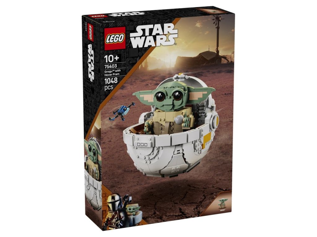 Děti si s touto stavebnicí LEGO® Star Wars™ postaví figurku oblíbené postavičky Grogua se vznášejícím se kočárkem (75403). Tento roztomilý dárek pro kluky, holky a fanoušky seriálu Star Wars: The Mandalorian™ od 10 let poslouží jako zábavná a hravá dekorace do pokoje. Grogu má paže ovládané otočným knoflíkem, pohyblivou hlavu a uši a může být vystaven v kočárku nebo mimo něj. Součástí je také sorganská žába z kostek (Groguova oblíbená svačinka!), hlavice řadicí páky a makronka, kterou Grogu může držet. Hlavní model této sběratelské stavebnice Star Wars doplňuje figurka LEGO Groga ve standardní velikosti v malém sestavitelném vznášejícím se kočárku a cedulka s informacemi, kterou můžete doplnit tento veselý výstavní kousek. Součástí stavebnice je podrobný návod na stavění a v aplikaci LEGO Builder najdete intuitivní digitální nástroje pro přibližování a otáčení 3D modelů, s nimiž bude celý zážitek ještě výjimečnější.