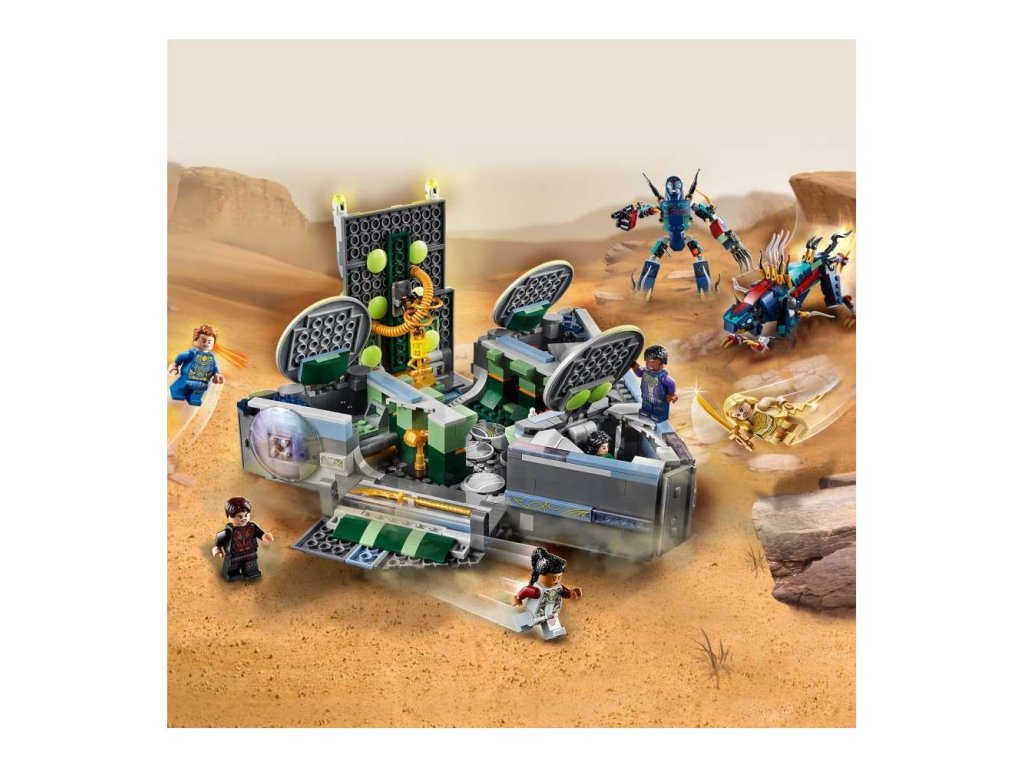 • Součástí je 6 minifigurek – Makkari, Ikaris, Thena, Sersi a exkluzivní Druig a Phastos – dále 2 akční figurky Deviantů, včetně jejich vůdce Kroa, kosmické lodi, zbraní a doplňků.