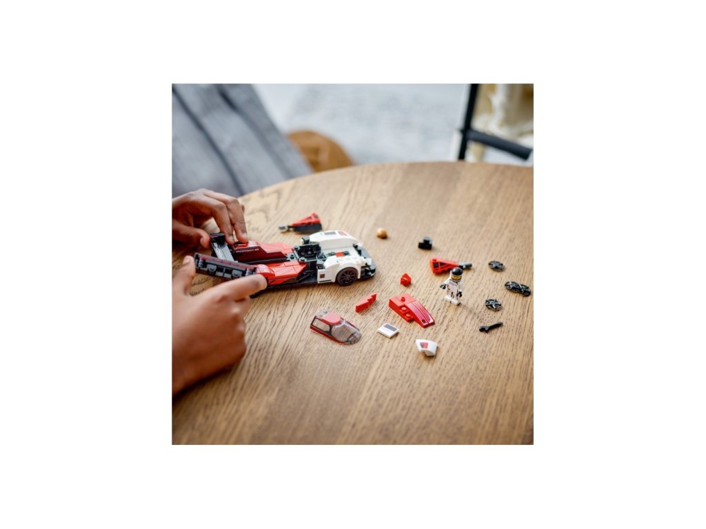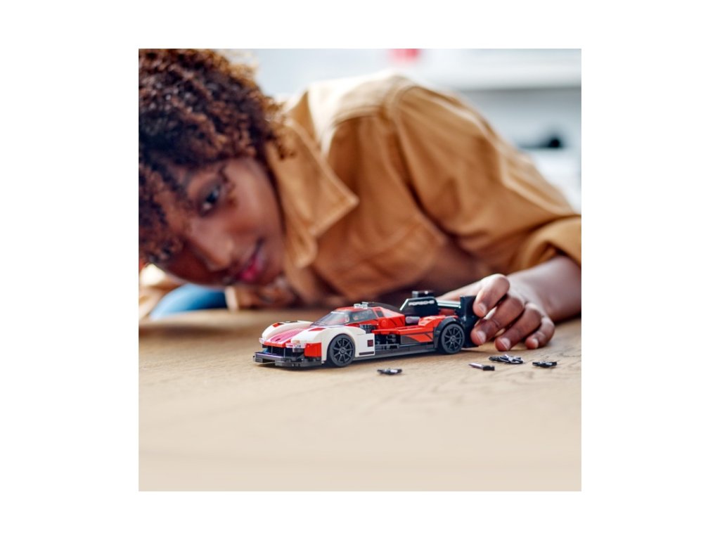 Stavebnice Porsche 963 od LEGO® Speed Champions (76916) věrně vystihuje nádherný design skutečného vozu. Děti od 9 let a sběratelé replik aut všech věkových kategorií si zamilují stavění, vystavování a hraní si s touto úžasnou hračkou. Postavte si vlastní Porsche Tato miniaturní verze vozu Porsche 963 Le Mans Daytona Hybrid se pyšní autentickými detaily z původního modelu: nechybí kombinace červené, černé a bílé barvy inspirovaná závodními auty Porsche z 80. let, výrazné podběhy kol, nízká kapota, zadní křídlo a zadní ploutev. Součástí stavebnice je také minifigurka řidiče, kterou lze umístit do kokpitu a vydat se s ní závodit na okruh! Zábavný digitální zážitek pro fanoušky LEGO® Nechte se s dětmi vést aplikací LEGO Builder a užijte si snadné a intuitivní stavitelské dobrodružství. Přibližujte a otáčejte modely ve 3D, ukládejte své stavebnice a sledujte svůj postup.