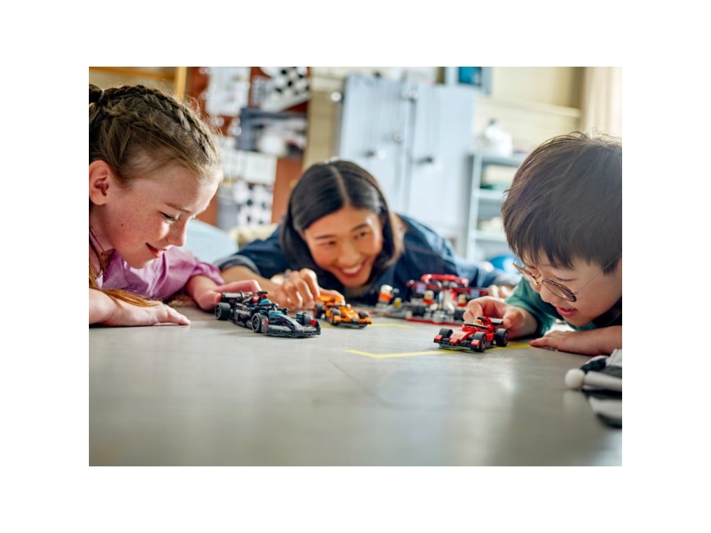• Zábava s F1® pro celou rodinu – Závoďte o šachovnicovou vlajku s celou rodinou s dalšími stavebnicemi z řady LEGO® F1 (prodávají se samostatně)