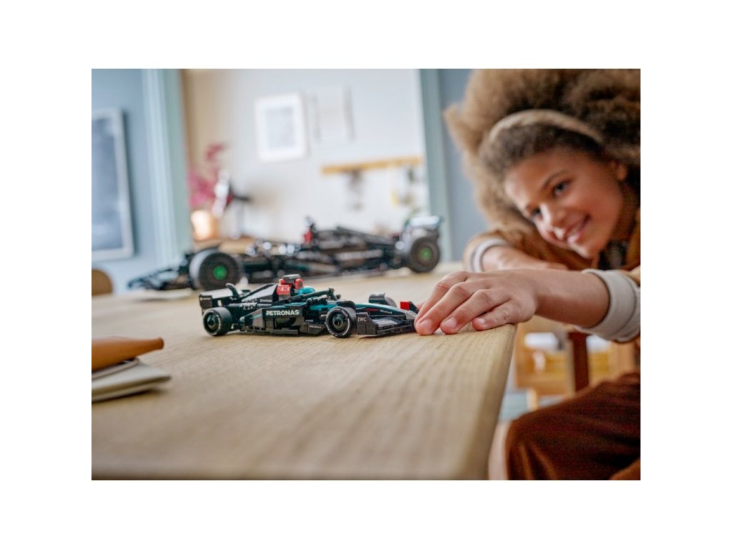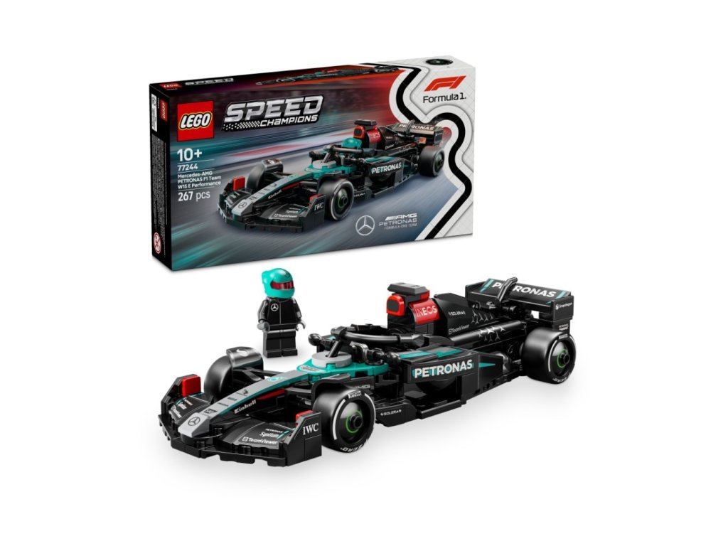 • 1 minifigurka řidiče – Tato stavebnice vozidla obsahuje minifigurku řidiče v outfitu týmu Mercedes-AMG PETRONAS F1® s okřídlenou helmou, kterou děti usadí do kokpitu a vydají se s ní na akční závody