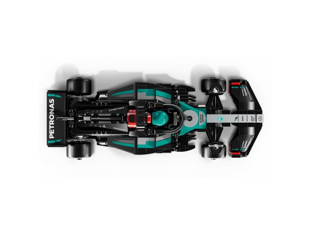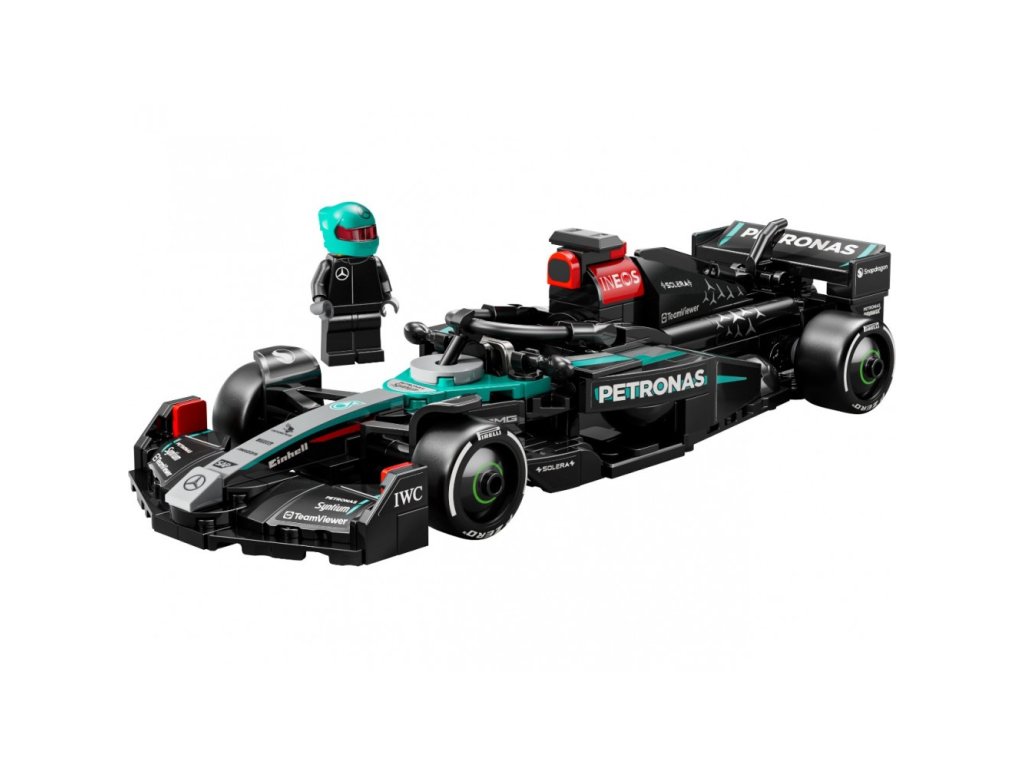 • Propracovaný vůz Mercedes-AMG PETRONAS F1® Team – Model závodního vozu F1 se pyšní designovými detaily inspirovanými skutečným vozem z roku 2024, včetně polepů sponzorů a širších zadních pneumatik s nápisem „Pirelli“